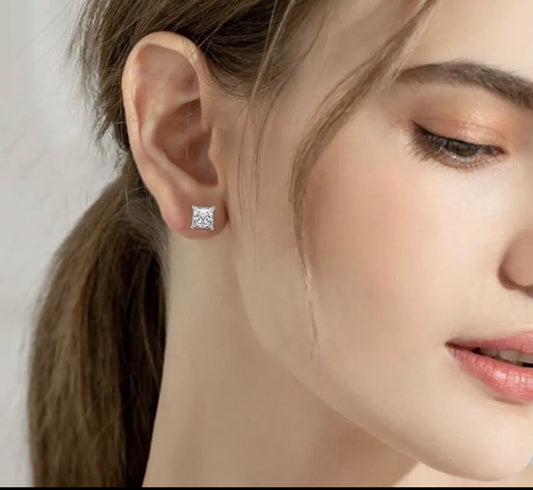 1.00 Carat Princess Cut VVS1/D Lab Created Stud Earrings 6mm 14K White Gold Value $395