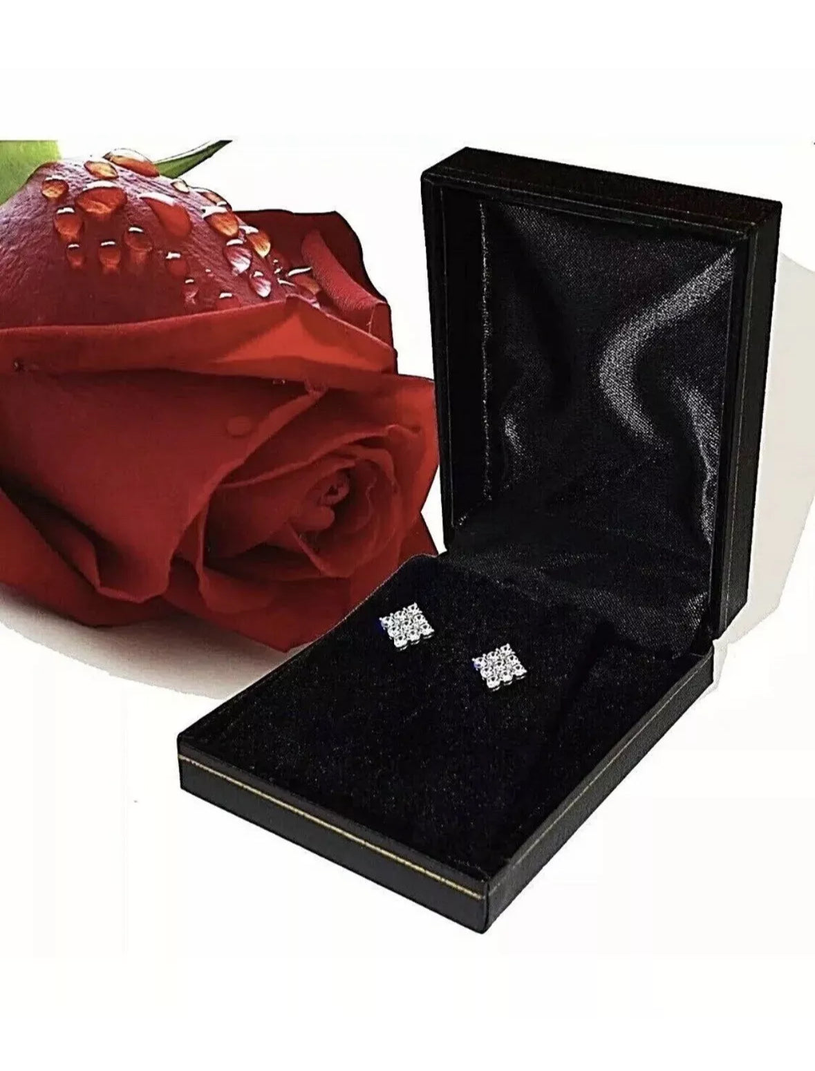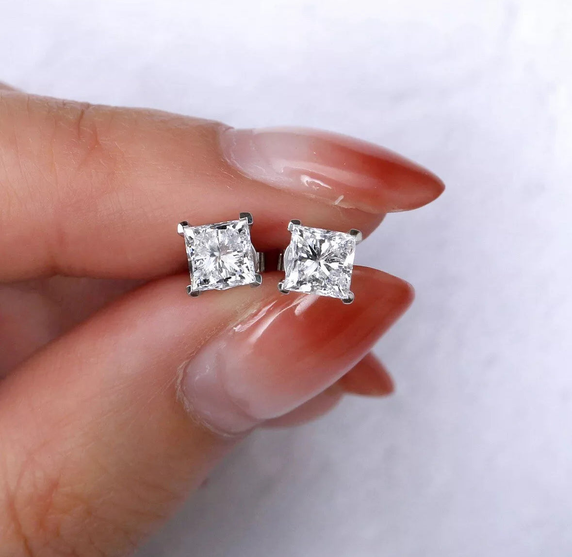 2.00 Ct Princess Cut VVS1/D Lab Created Stud Earrings 14k White Gold 6mm Push Back