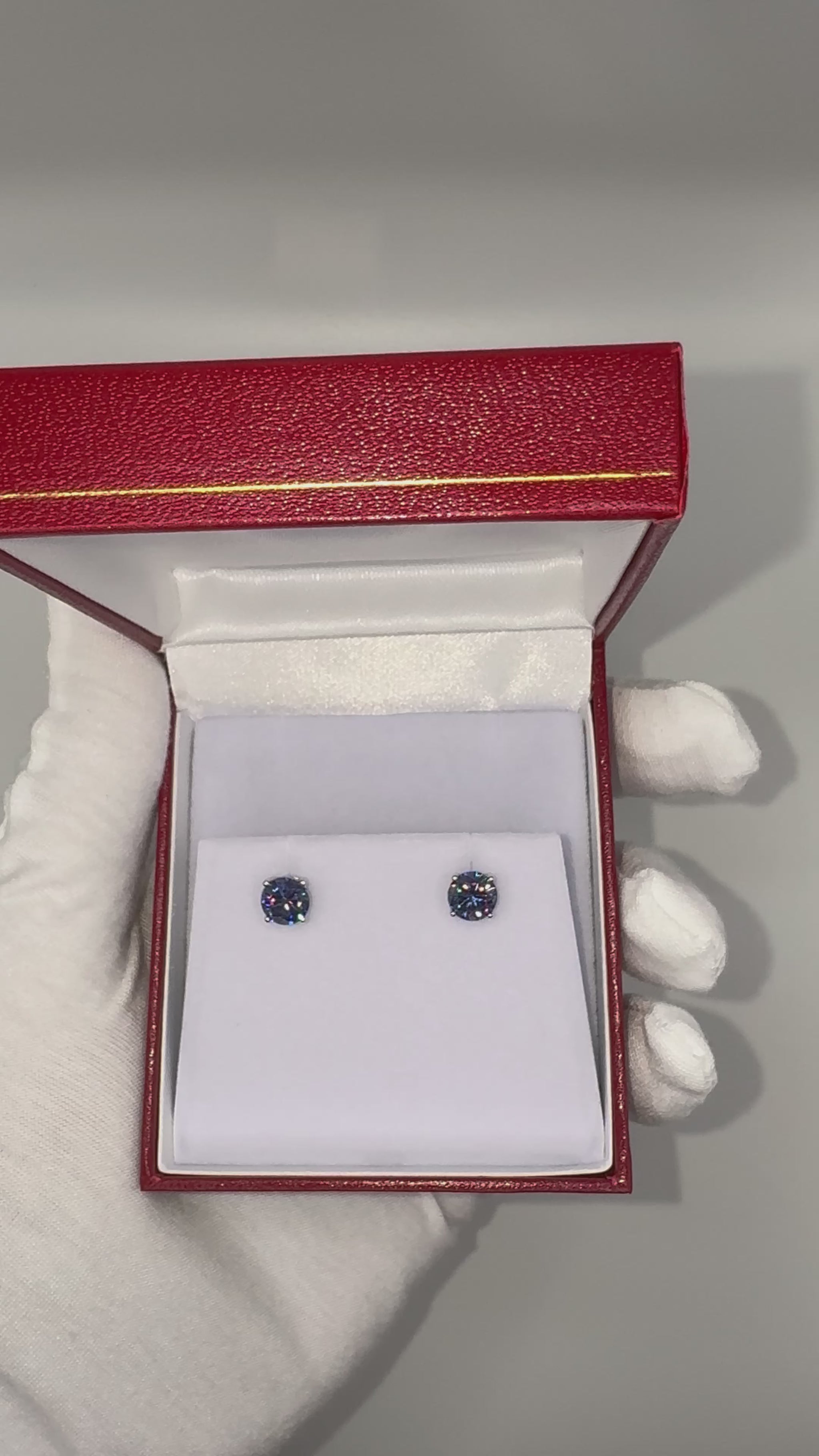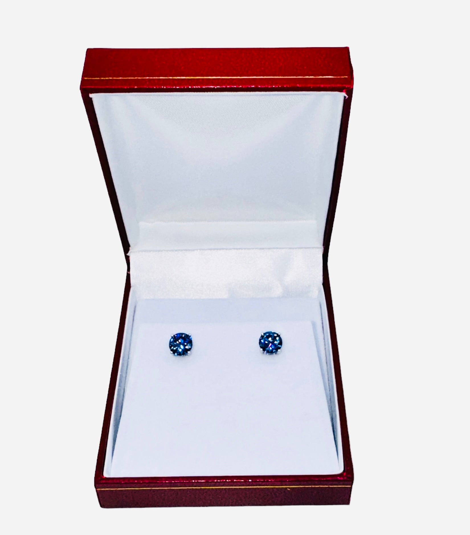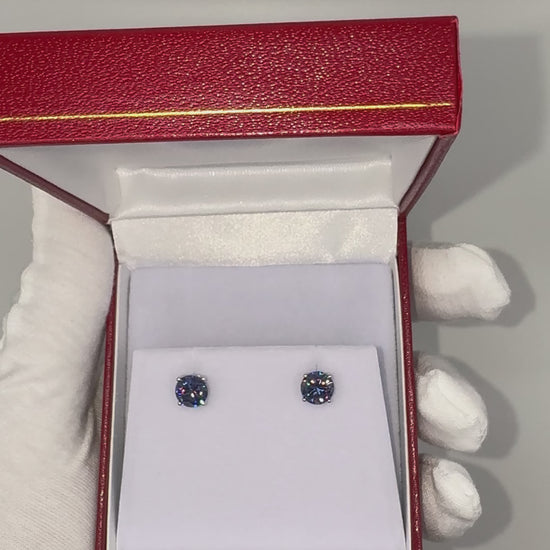These exquisite premium quality lab created tanzanite stud earrings are crafted out of 14K White Gold & brilliant premium quality stud earrings. This design of stud earrings is one of the most desired and classy of all. They are set in a unique, secure, 4-prong designer style setting.