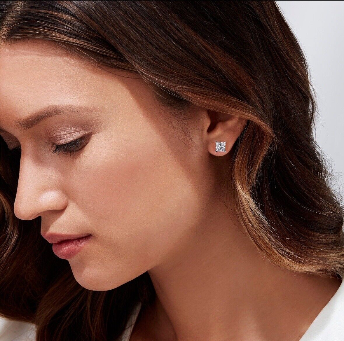 2.40 Ct Princess Cut FL/D Certified Moissanite Stud Earrings 14k White Gold 6mm Screw Back