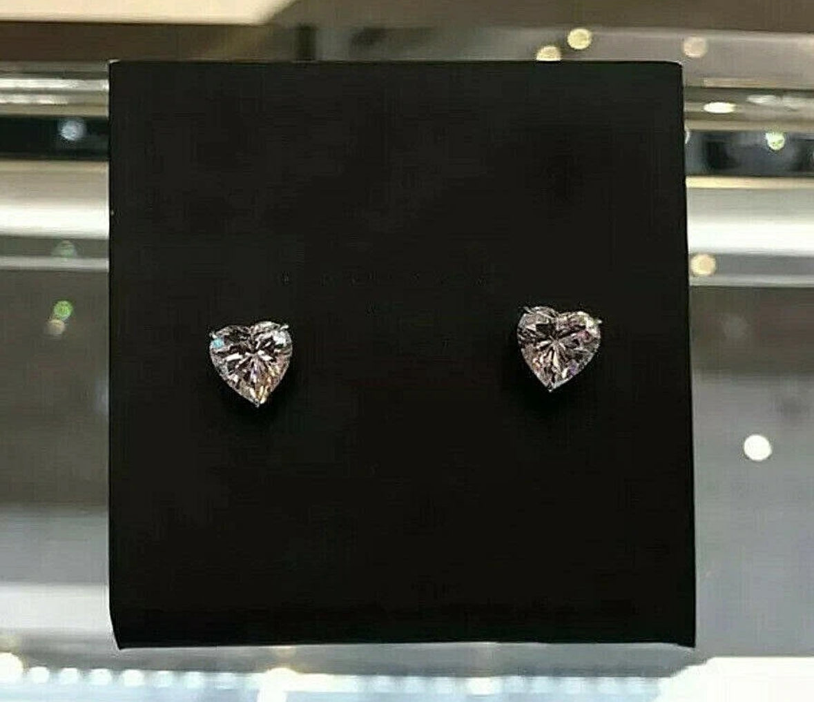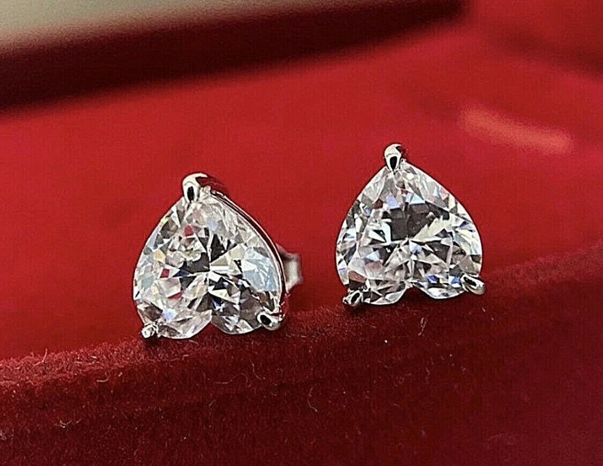 2.50 Ct Heart Cut Solitaire Studs Earrings Solid 14k White Gold Push Backs Gift Studs