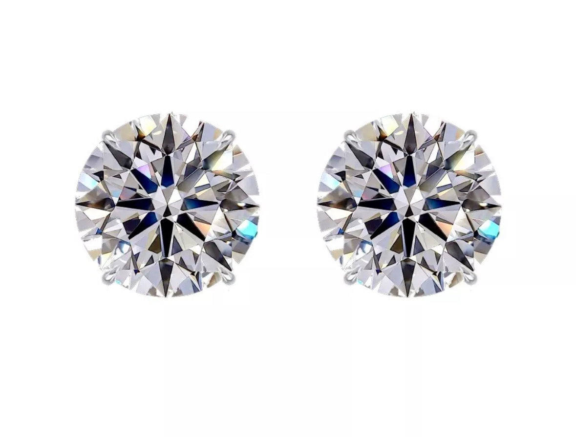4.00 Carat Real Lab Grown VS1/F Diamond Solitaire Stud Earrings in 14K White Gold Screw Back Basket Setting Value $6995.00