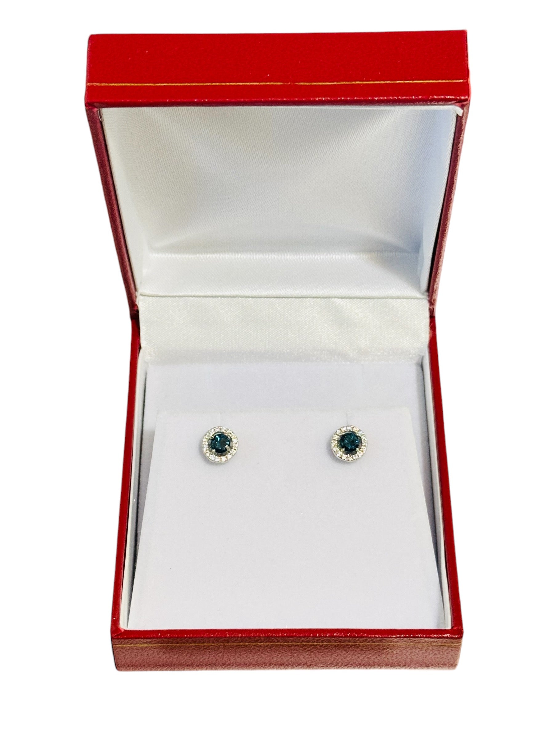- A Pair of 14K White Gold Round Brilliant Cut Stud Earrings.