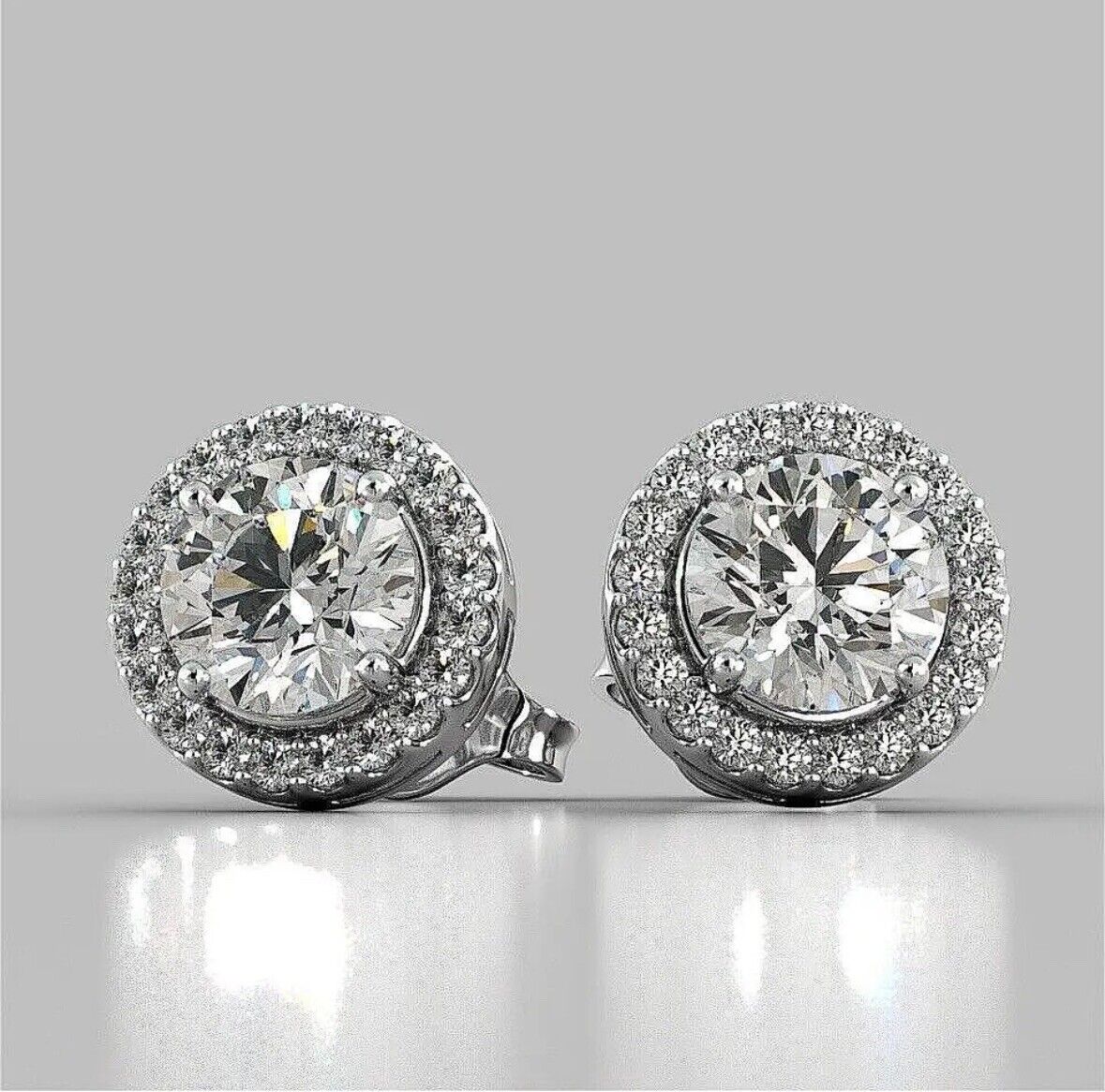 4.00 Carat Round Brilliant Halo Round Solitaire Stud Push Back Gift Studs Earrings in Solid 14K White Gold Value $495