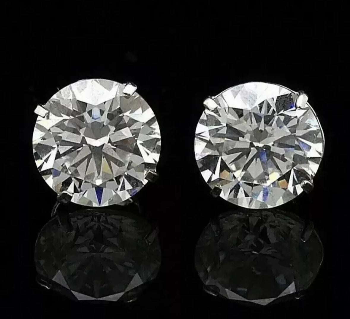 8 Ct Round Cut VVS1/D GRA Certified Moissanite Stud Earrings 14k White Gold 10mm