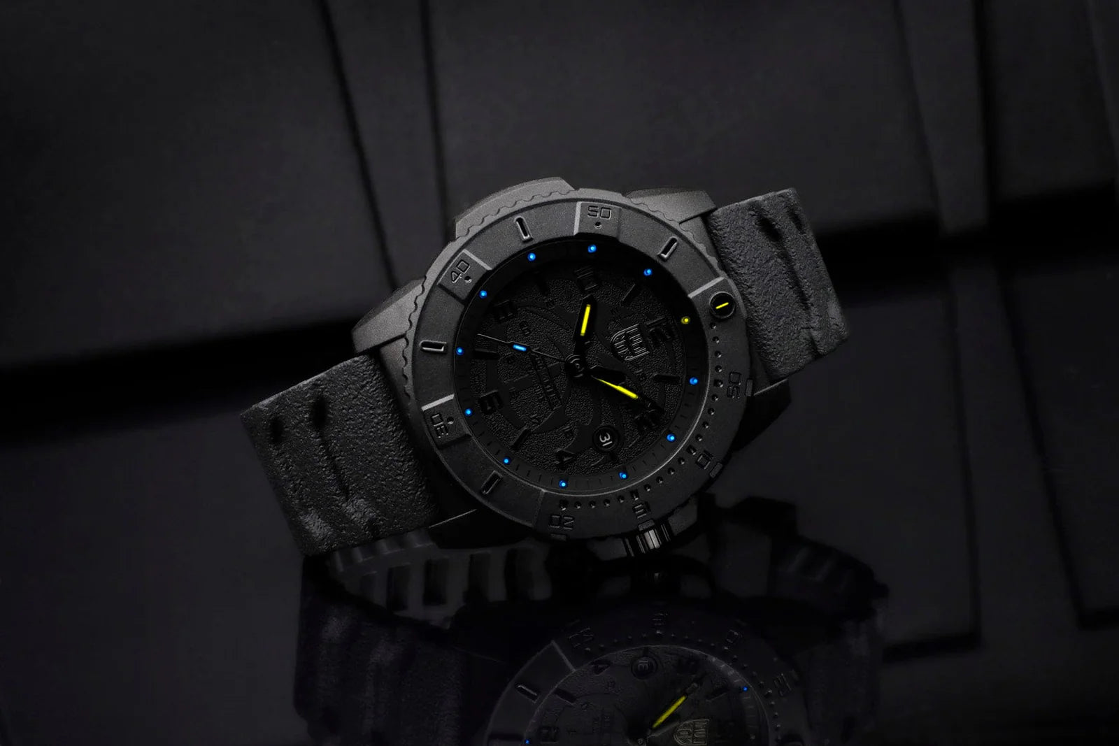 This striking complete black-out Navy SEAL Foundation edition is built with purpose and performance. Designed in collaboration with the Navy SEAL Foundation, this timepiece symbolizes the light and support provided to veterans and their families — showcased by the contrasting Luminox Light Technology in yellow and ice blue, glowing continuously for up to 25 years without pushing a button or charging.