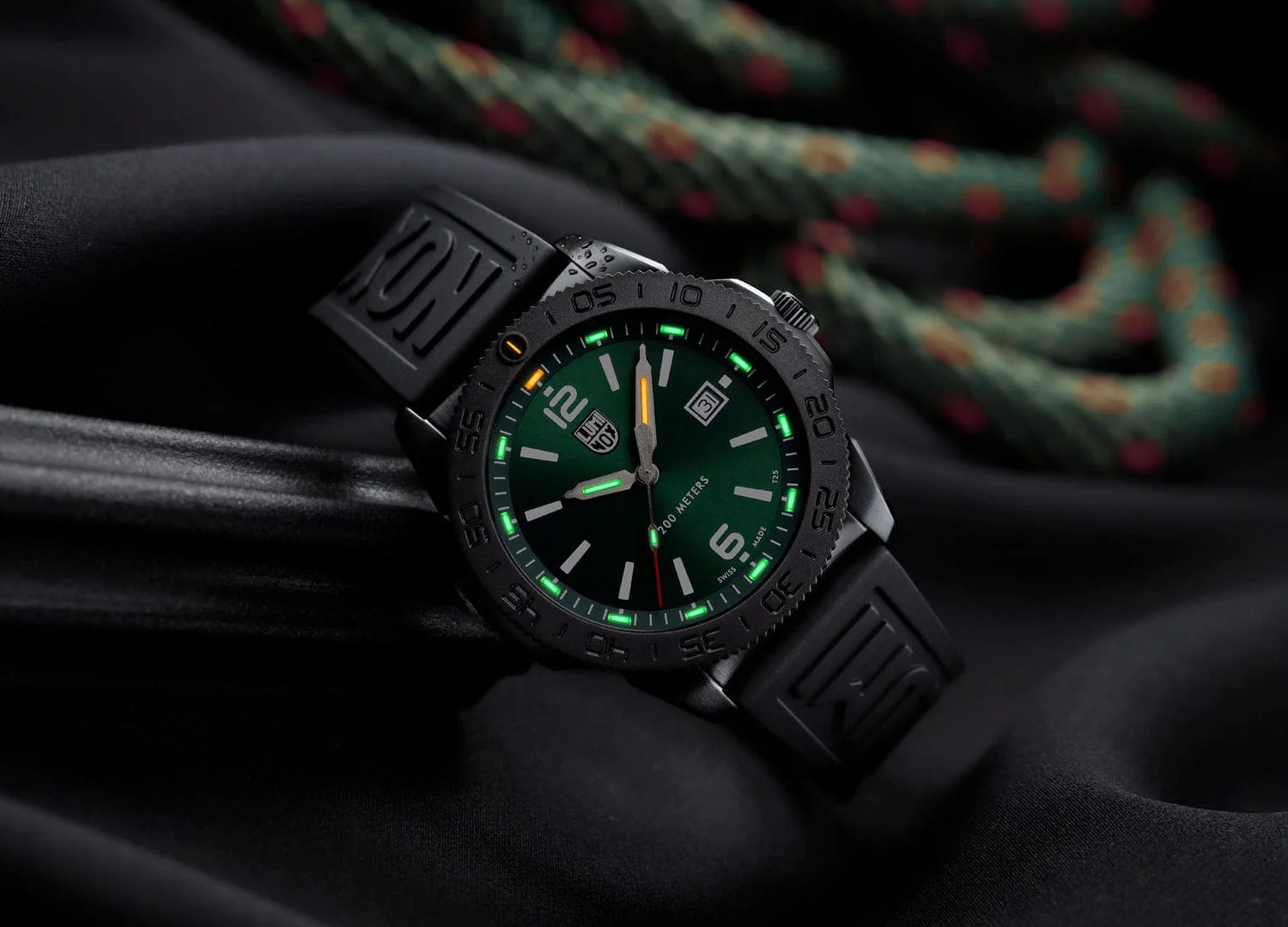 The emerald green sunray dial makes a bold statement while ensuring excellent readability in all conditions. Powered by Luminox Light Technology (LLT), the watch glows continuously for up to 25 years—no batteries to charge, no buttons to press.
